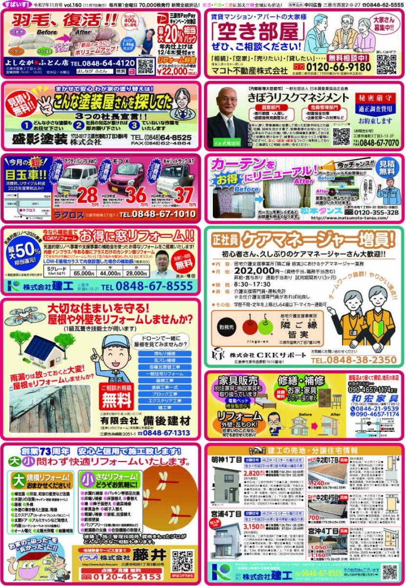 三原市に加え、竹原市、尾道市の皆様にもお届けしている、中川広告で最多の70,000部発行の広告です。